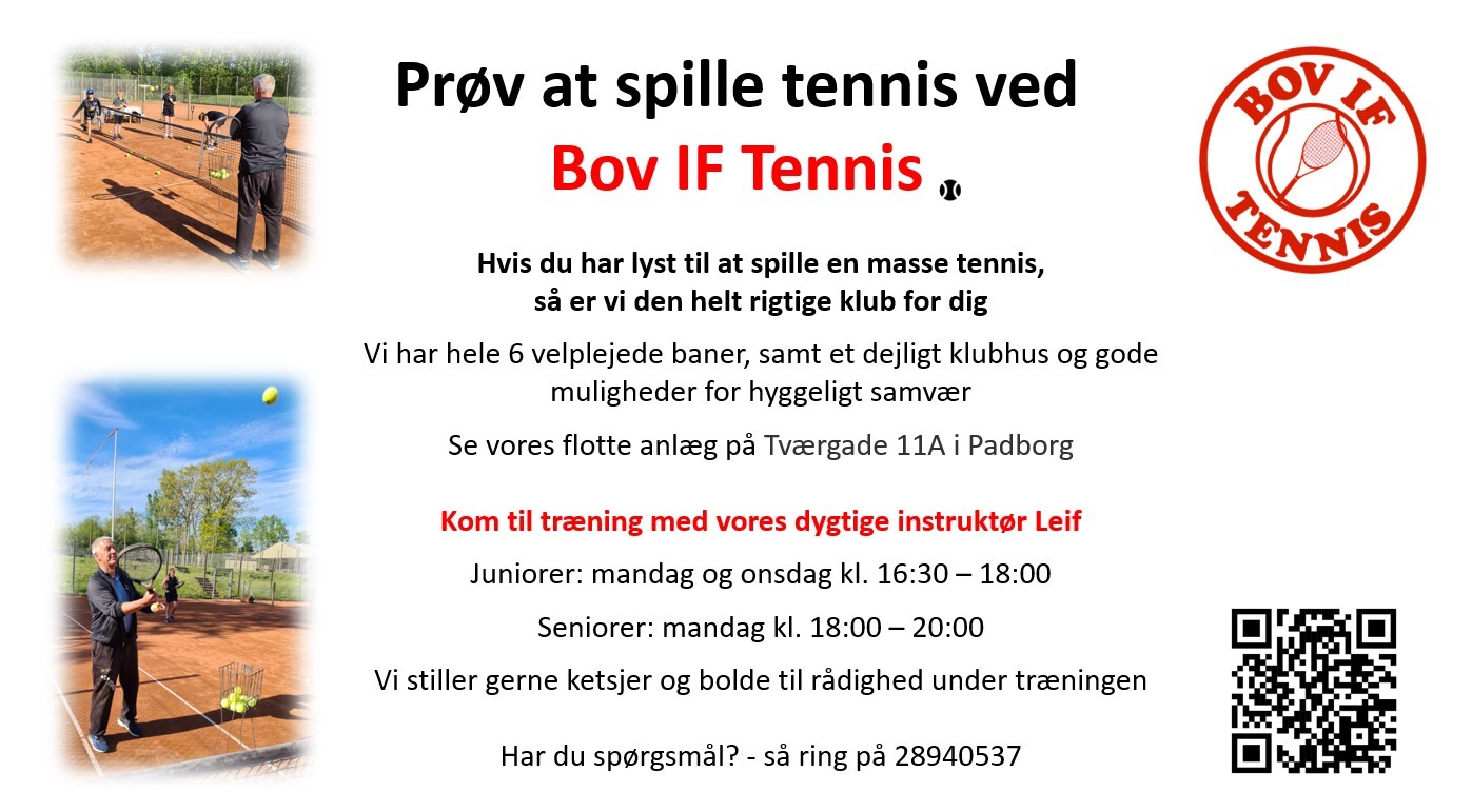 Bov IF Tennis stiller gerne tennisketcher, bat og bolde til rådighed.